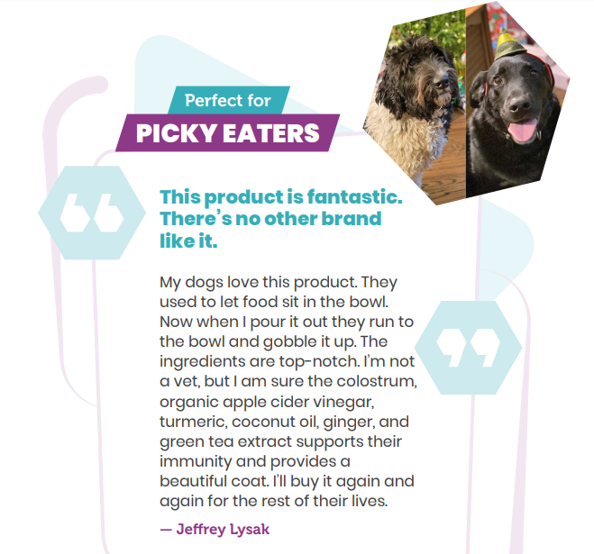 I want to thank your family for making this absolutely wonderful product. My dog is 13 years and has a heart issue. After having your food for about a month she is looking better. More energy. Her coat is fuller. She seems happier. Whatever you're doing thank you from my heart. I know time is short for her but if I can make her better in any way for her last years I'm there. You are amazing humans.